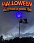 Decorate your flagpole for Halloween with the Service First LED Skull Finial and Pirate Flag! Attaches to most residential flagpoles. 27.5"x 17" in size this fun skull lights up in neon blue and comes with a pirate flag for the occasion.
